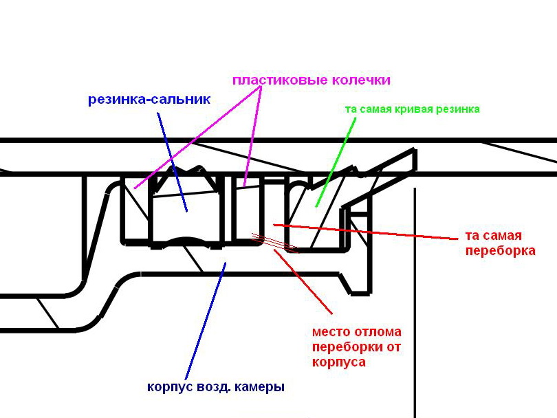 Но вот как она (трещина) там образовалась, почему вдруг переборка между резинками в одном месте оторвалась от корпуса, мне это не ясно, ведь она расположена в центре, и удары штока на нее не приходятся.