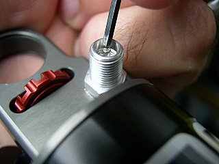 7. После того, как гидролиния прикручена к обеим частям, толстый шток вкручен на место (от руки), и механизм брэйна так же вкручен в колбу, с выставленным в ней поршнем, вставляем резинку затычку в низ толстого штока (около ушка) и затем завинчиваем шестигранную гайку. Перед этой процедурой надо точно убедиться, что в системе нет воздуха. Для этого я как раз так долго ее и прокачивал. Удалось сие проделать не с первого раза.