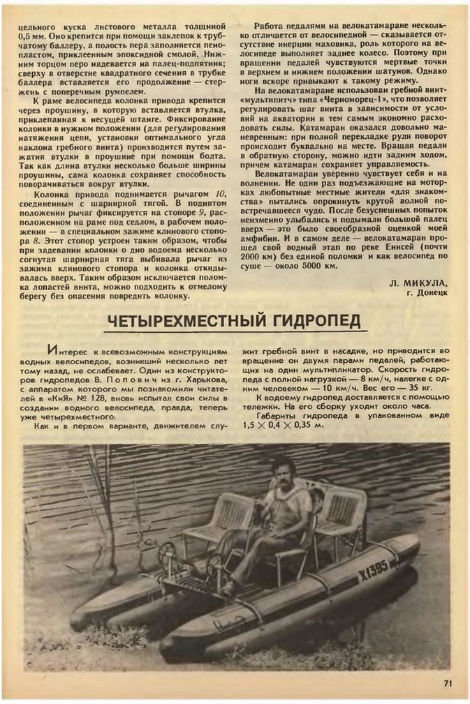 ещё одна конструкция водоплавающего вела! http://www.yaplakal.com/forum2/topic246229.html