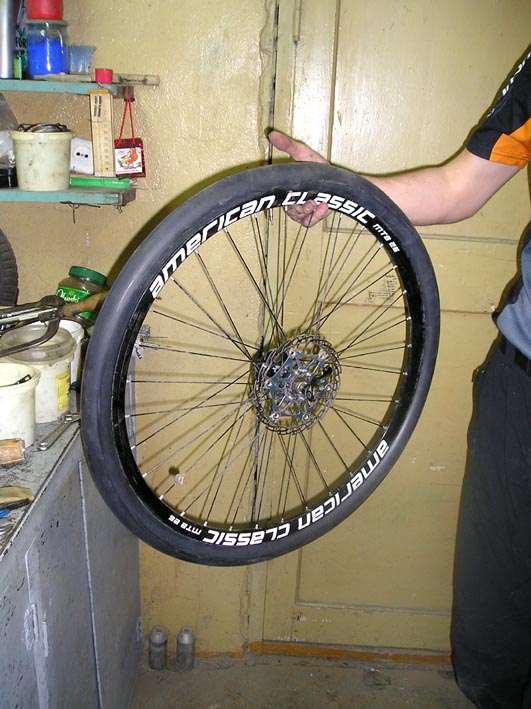 самодельного же здесь почти ничего и нет , покрышки - бескамерка , герметик того же производителя.