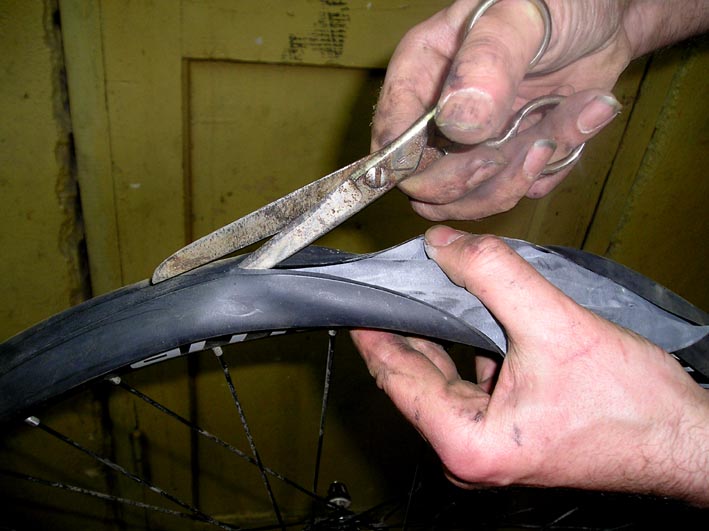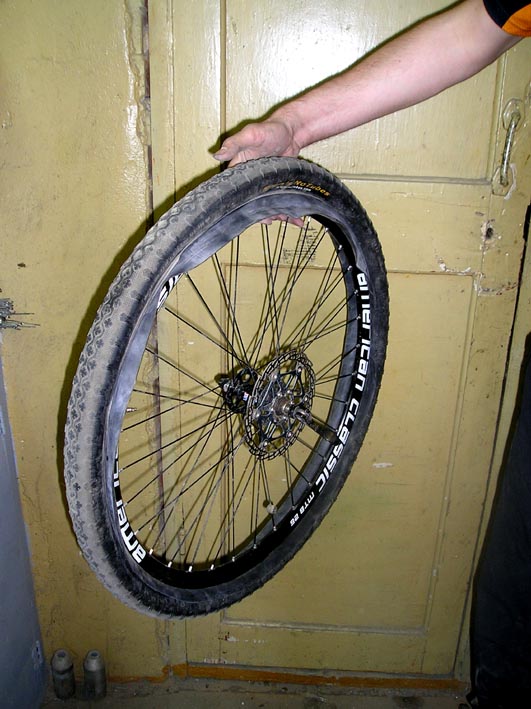 Подчеркнем, что все выгоды перехода на бескамерную резину ощутимы на легких, тонкостенных покрышках. из – за того, что при равном давлении бескамерная покрышка мягче и лучше глотает мелочь. Перевод толстой резины на бескамерный вариант позволяет избавиться от пробоев камеры типа «змеиный укус» при низком давлении в колесе. То есть появляется возможность, при необходимости, ездить на пониженном давлении. Улучшения наката на толстой резине, скорее всего, заметно не будет. Автору было интересно попробовать саму возможность переделки  обычных колес под бескамерные, используя опыт израильских байкеров. Как типичные израильтяне, эти мазурики не стали покупать фирменные наборы от NO TUBES по 50 баков, а сэкономили за счет использования подручных средств. Автору, хоть он и гой необрезанный, также как и израильтянам, цена в 50 долларов за две полоски резины с ниппелями представляется сильно перегретой. Призвав на помощь друзей, и воспользовавшись гостеприимством резидентов велобазы «Невская», автор начал переборные работы.