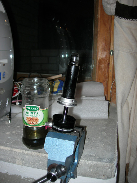 Да не тут то было, как я не затягивал а шток всё равно прокручивался в тисках.