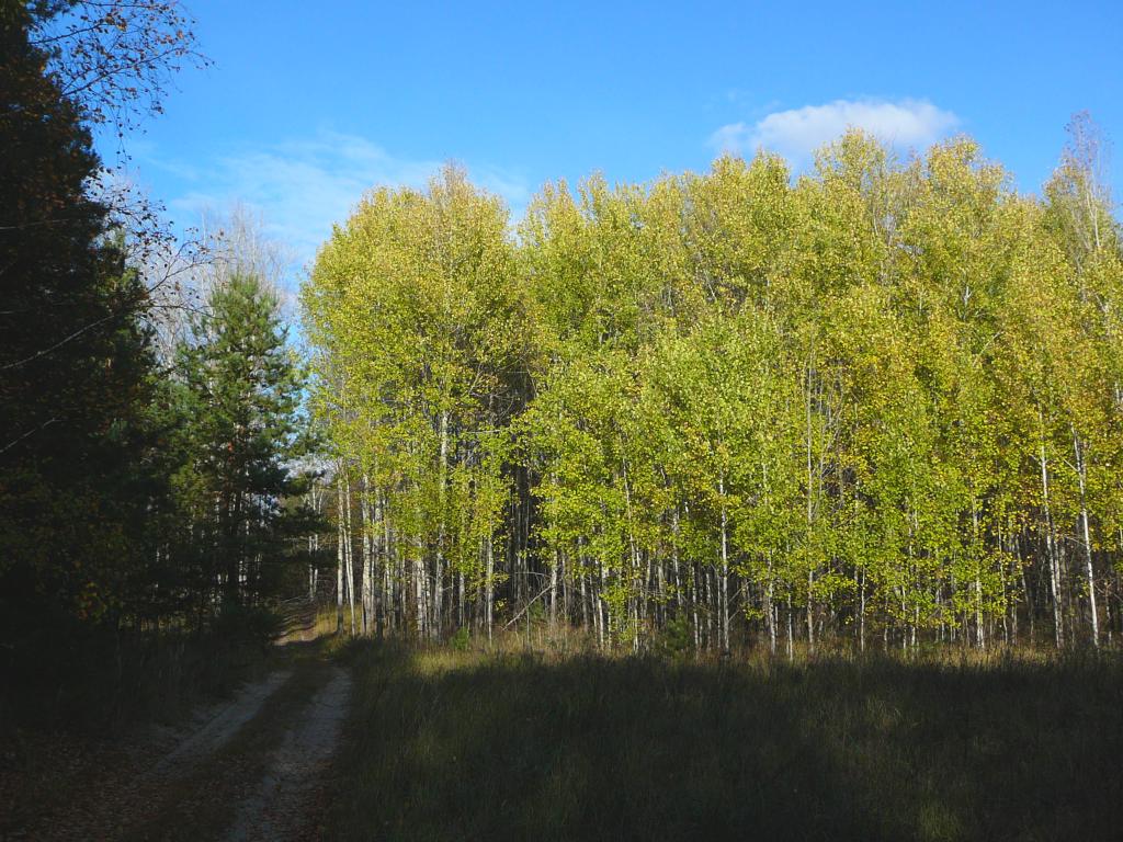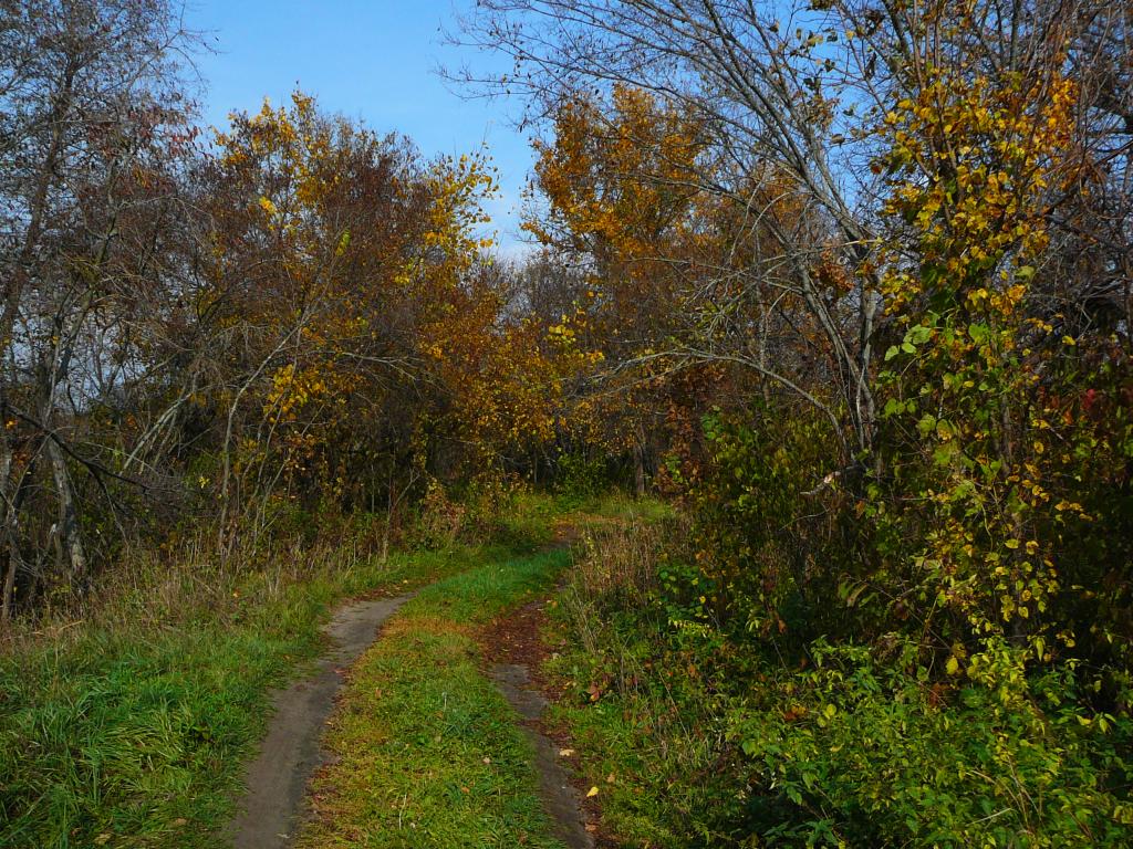 Некоторые деревья уже голые , а некоторые еще полностью зеленые