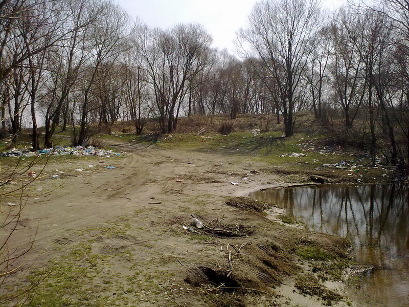 Вот на этом маленьком песчаном пляжике я когда-то купался, а теперь здесь some kind of мусорка.
