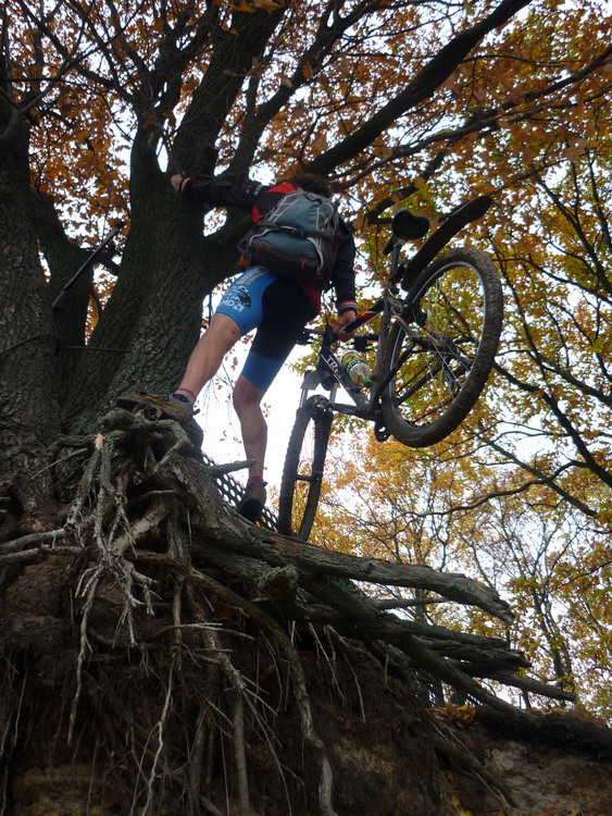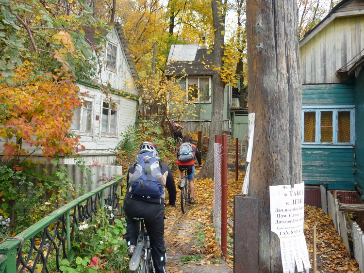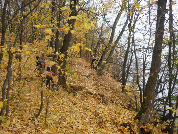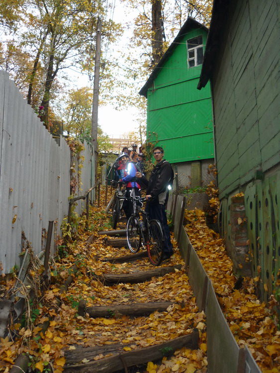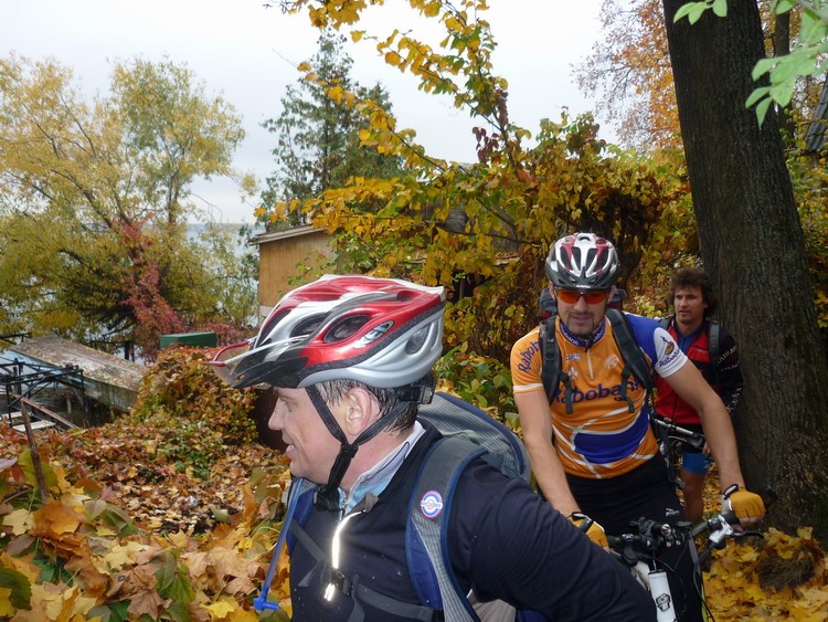 А ехать начинали от Петра1. Составом: Галя-олимпийская надежда, Галя - Rangifer, Keeper, konalex, MIG, Radler (Царь), WowanBB (superman) и я. Провожали Иноков и Жени. Старались ехать поближе к воде. Через сан. Горького, по плитам водокачки приехали в Рыбачий где принялись скакать по обещаным ступенькам. Местность между Рыбачим и Белой горой известна многим. Скользкие корни под листвой, спуски - подъемы напоминали, что кросскантри - это не шутки.