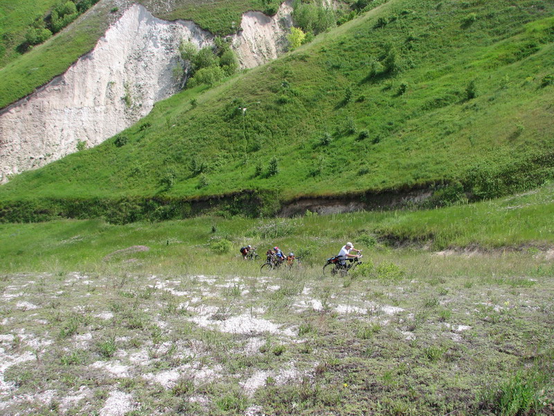То ли ручеек, то ли болотце, прямо перед тем, как уперлись в овраг, пока переходил сие чудо из влаги, мела и зелени, чуть не потонул (обувка чуть по щиколотку не ушла в меловую жижу, за высокой травой не заметно). seliff тоже что-то подобное нашел, а то мы все гадали, где же он мог так испачкаться (ноги и штаны) в 35 градусную жару-то, когда вокруг так СУХО.