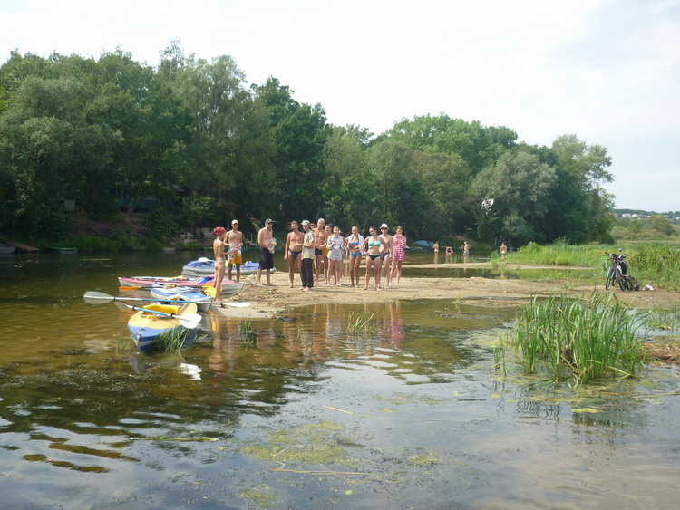 Мы забрели туда и уселись ждать экспедицию байдарочников во главе с Невеличкой, а также с Джедаем и Семеном. Они были на подходе, о чем мы разузнали, установив связь по телефону с батарейкой. Пока ждали, я достал из рюкзака лодку и надул ее. Она должна была пригодиться. Веселыми криками отметили появление байды Джедая, а затем и всех остальных. Ведь приехала еда! Воспользовавшись замешательством водников от встречи, съели их сушки и изюм, а потом начали фотографироваться.