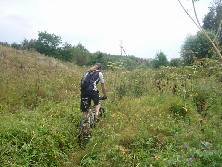 Наконец вода хлынула и все принялись деловито наполнять бидоны. Довелось приложиться к струе и нам. Вдобавок нам объяснили как попасть в Бондаревку. Она там у всех на слуху. Ведь в то время как дачники кропотливо возделывают землю в надежде на урожай, обитатели Бондаревки занимаются прожиганием жизни, сидя на пляже и убийством рыбы с помощью удочек. От Прудского в пойму Воронежа идет овраг. Его склоны отданы дачникам, а для велосипедистов на дне оврага предусмотрена тропинка.