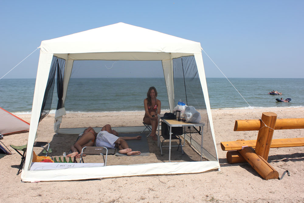 Идеальный вариант, которому мне не давали следовать – это просыпаться через час после начала завтрака, в это время в душе уже никого нет, после чего приходить на завтрак, где также уже свободно )) (хотя уже в 8 утра в палатке такое пекло что не хватает веника) кстати когда Женек проверил температуру - там было 57 градусов, а на припасенном газовом баллоне нашлась надпись "не нагревать свыше 45 градусов", но это не страшно, рядом с нами (у камеры хранения) валялся чей-то 5 литровый баллон ) (ну да ладно никому неинтересны эти коммунальные передряги) воду кстати иногда отключали )))) Честно говоря, за неделю до начала ZGames, казалось, что строители не успеют ничего сделать, хотя потом оказалось, что ZGames проходит немного не на тех сооружениях, где Kazantip, и к играм в основные площадки таки развернулись… Даже такой простой, с виду, снаряд как хождение по канату – технологичен, специальная стропа которая выдерживает большой вес (разной ширины, для разной сложности) специальная распорка которая забивается в землю и механизм натяжения, кстати интересное занятие, дойти до середины и не упасть – уже подвиг, а некоторые ходят туда, обратно, и даже прыгают, делают перевороты сальто и др...