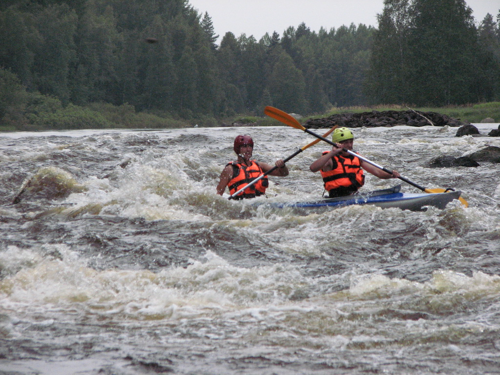 Пару раз неплохо посидели на камнях, вылезали чтобы сняться. Но на байдарках кроме как немного погнутым железом это никак не отразилось, на экипажах впрочем тоже :)