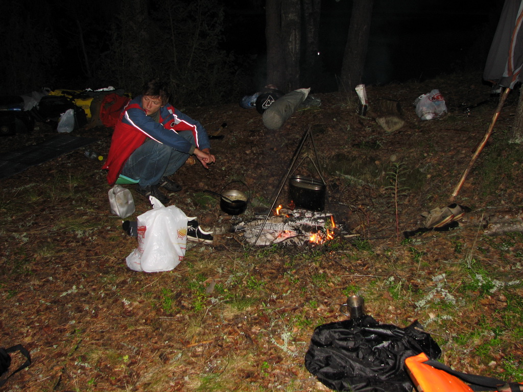 Нет конечно, ночевали под полиэтиленчиком в дровах :)