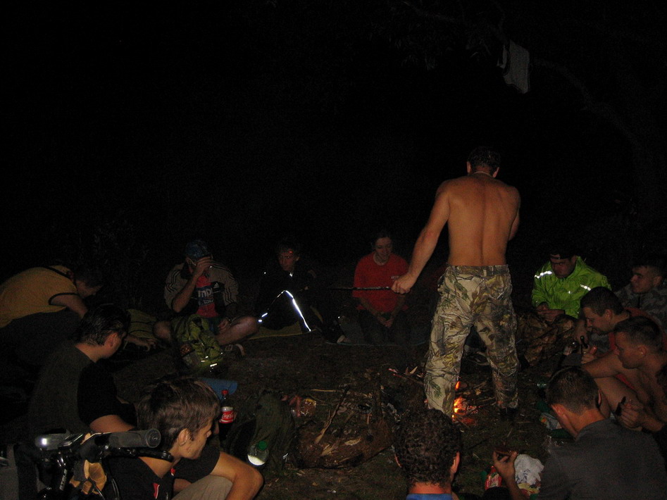 Недополатка без стен, в которой тем не менее прекрасно дрыхнут трое человек, да ещё и храпят; похищение дров с запретной зоны; шумная компания; новые знакомства; 3 бесконечные сосиски; материализовывающийся соус, считавшийся полностью съеденным; несколько видов чая; море эмоций; разнообразные погодные условия; большая стирка по утру - и всё это за 9 часов, не считая подготовки.