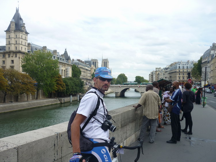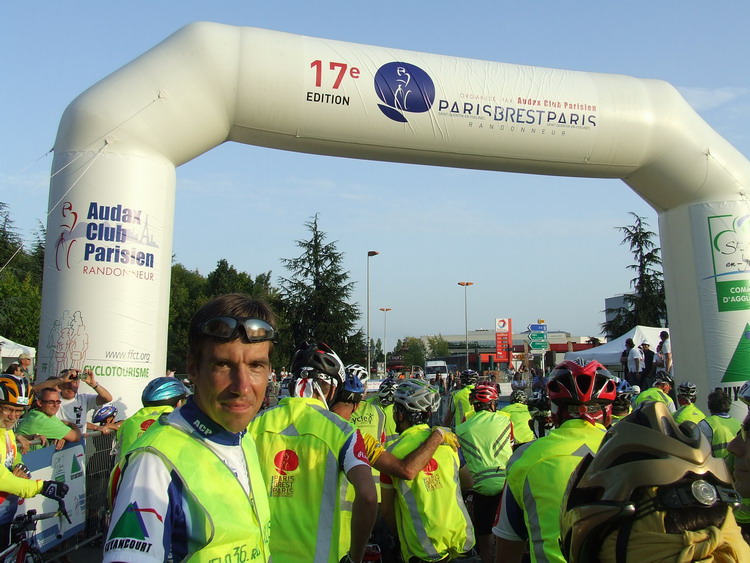 из Радлеровской велоаптечки успеха не имели. Эта надпись ела мне мозг до самого возвращения в гостиницу и потом три дня, пока я лежал в номере и ждал Радлера. Под конец визита удалось ее оттереть за полчаса собственной зубной щеткой и гостиничным жидким мылом. Вобщем, погожим парижским утров двинулись на регистрацию в СенКвентин. Это километрах в 7-ми от гостиницы. Сначала дали крюк по Версалю и Парли. Потом выехали на широкую улицу с велодорожкой. В попутном с нами направлении двигались другие велосипедисты. Это придавало уверенности в том, что едем правильно. Слева долго тянулся длинный каменный забор с решетками. Как потом оказалось, это был тот самый версальский парк