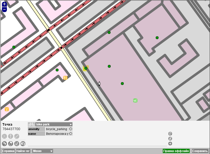А я не нашла на openstreetmap обозначения велопарковок. Я куда-то не туда смотрю? http://www.openstreetmap.org/?lat=51.66 ... 83&zoom=18netwind писал(а):да как-то неправильно смотрел. и парковка у Галереи чижова тоже обозначена.sp!rt писал(а):каким образом? почему эту, у Спортмастера, пропустил?netwind писал(а):Я сейчас проверил и не обнаружил на этой карте ни одной велопарковки в Воронеже.