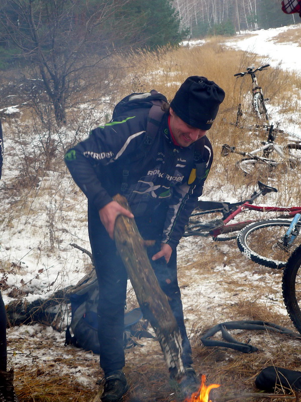 К посещению усопших паровозов готовились кто как мог. Запасались едой, надевали самые гладкие узкие и изящные покрышки. Иван Иванович оседлал свой новый двухповес . Олег Андреевич надел праздничную одежду и разучил хореографическую композицию, которую исполнил на привале. Привал устроили, уже миновав Ступино, на кромке заповедника. Там оказались, свернув с М4 у второго поста ГИБДД, лесом доехав до Старо Жыво Тинного, а потом парком в Айдарово и, объехав Рамонь. Привал из-за хороших дров и больших запасов съестного вышел на славу. Дальнейшая дорога к Пчельникам, вдоль границы заповедника, была как никогда накатистой. Даже шипы, несмотря на понты и дороговизну не мешали. Мне, примерно с половины пути, стала мешать растянутая в хлам цепь. Пришлось ехать с диким каденсом, на маленькой передней звезде, чтобы передача не проскакивала. В Пчельниках пленились избой, проросшей насквозь ветлой. В полной тишине и с некоторым волнением перешли границу Воронежской и Липецкой областей, проходящую по реке Студенка. Настала пора углубляться в заповедник. Сделали это по – диверсантски – след в след, взяв велосипеды на руки. Таким образом у обходчика должно было сложиться впечатление, что в заповедник вошел один пеший посетитель, который был маленько не в себе и сильно вклепывал ноги в земную твердь. Через сто метров конспирацию свернули, оседлали велы и вскоре очутились у полуразложившегося моста через полузамерзшую реку Ивницу. Развилка дороги манила свернуть на Кудеярово городище, но искушению не поддались. Двинули в сторону Графской – Бора. Слева в лесу хрустнула ветка. Причиной хруста оказался здоровенный лось, который шел с нами параллельным курсом метрах в ста слева. Он обогнал нас, вылез вперед на дорогу, а потом ушел вправо. Следы его копыт на дороге впечатлили. Даже мысли о паровозном кладбище перестали мучить. Вскоре выехали на более накатанную дорогу и оказались у кордона на ж.д. переезде в районе Бора. Мимо борской психиатрической лечебницы за новым высоким забором и мимо заброшенной колонии за старым высоким забором поехали на станцию Рамонь где когда-то в тупике действительно стоял один паровоз серии «Э». С тех пор как его распилили, паровозов там не регистрировалось. Привычным путем доехали до Отрожки через Маклок и Дубовку. Чтобы поход отбить решились на посещение мумии паровоза ФД - Феликс Дзержинский, которая стоит у входа в депо. Это именно мумия, с обрезанными органами управления в кабине, в которую нельзя попасть, с разобранным стокером и сгнившими дымогарными трубами в котле. Из за громадных размеров этот паровоз не мог пролезть во многие железнодорожные закутки Страны Негаснущего Солнца. Кроме того он был дико прожорлив, чем снискал себе уважение советских людей, ведь издревле в деревнях судили о работнике по тому насколько много он ест. Несмотря на сдавленные угрозы шляющегося персонала депо, мумию паровоза покорили. Это послужило некоторым утешением от безрезультатной 120 км. прогулки. во время которой ВованББ дал убедительный отпор попыткам мирового трансглобализма пристрастить простофиль к бесполезной и дорогой шелухе мирового велопрома в виде аммортизационных вилок и шипованной резины. Он, как я уже засвечивал, ехал на шоссерных колесах, держа равнение на классиков. Ту -Ту.
