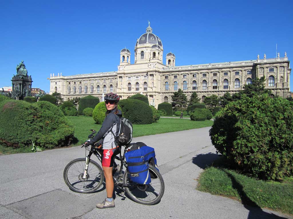На обратном пути Вова предложил на денек заехать в Вену. Был сильный ветер и яркое солнце. Велодорожки в Вене очень непонятные. То велодорожка – это часть тротуара, то часть дороги, нелогично поворачивают, перепрыгивают с одной стороны улицы на другую. Народу на велах очень много. В основном ездят на всяком хламе, который не жалко бросать где попало. Ездят в юбках, платьях, костюмах… В общем велосипед там не спорт, а средство передвижения.