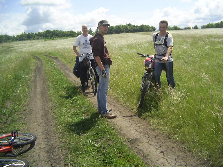 С утра, правда, всю малину испортил дождь, после, однако, даже появилось солнце и подсушило все творения утреннего дождя, И я уже было решил ехать на подвесе (сомневался потому, что он у меня без крыльев, а извозиться в грязи намокнуть не очень хотелось). В итоге было решено с Метеором, сначала перенести время поездки, а если не попрет, то и вовсе ее отменить. В появившееся окно я побежал в Триал с надеждой подобрать там крылья, но так ничего и, не выбрав, взял, в итоге, щиток на раму и «памперсы» (велошорты). В них и поехал. Потом дождь зарядил вновь, а затем перестал лить. После него я уже точно решил ехать на треке. И очень хорошо сделал, потому как там были еще установлены и фонари (я уже был готов к ночной), какие и понадобились вскоре, после прибытия нашей группы в Лиски. :)
