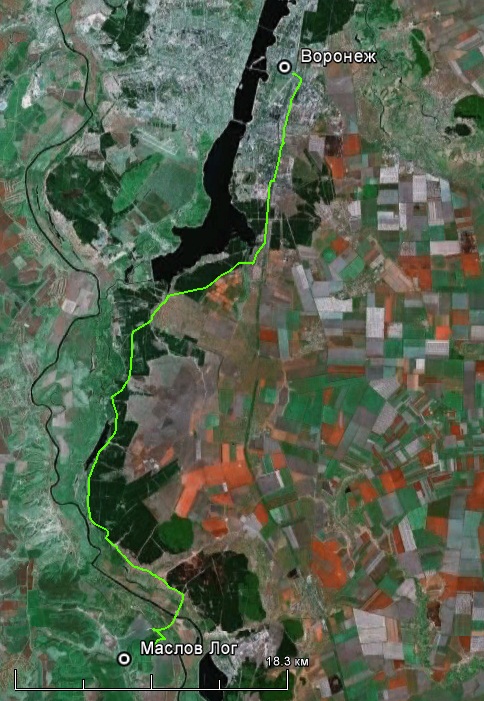 30 апреля движемся вдоль правого берега Дона через Коротояк, Девица, Урыв-Покровка, Титчиха к Маслов Лог и там становимся на третью ночевку.