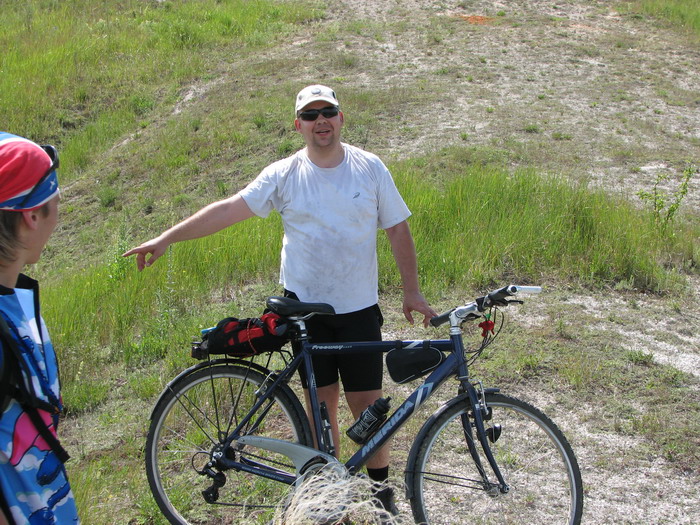 . Ну и, собственно, почистили в сторону переправы и Аношкино. Здесь уже были все прелести - жаркое солнце почти посреди поля, проколы Метеора и медленный спуск у KEEPER-а (отошла заплатка на камере), эскадрильи мошек и комаров и много чего еще, в частности, на каком-то асфальтовом спуске скорость-таки зашкалила до 69 км/ч