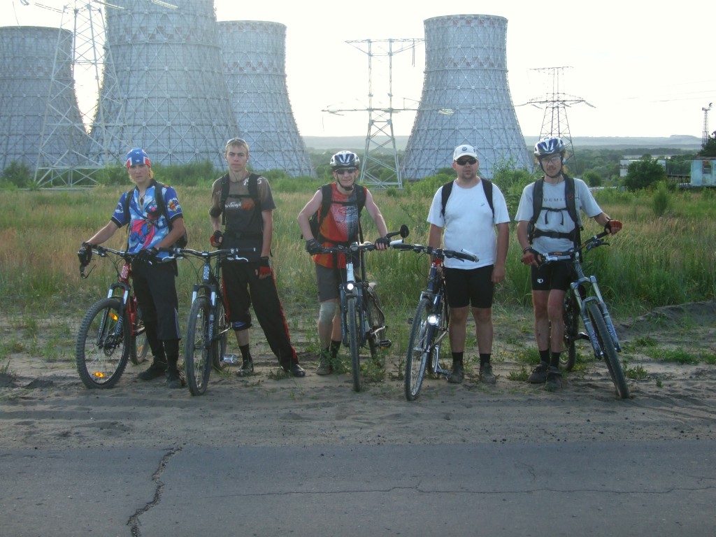 Мы их опять делаем. В конце концов, они отрываются и исчезают совсем (наверное сделали-таки движок). Мы же пилим уже по чистейшему свежее положенному асфальту на Ново Воронеж, проезжаем атомку, делаем памятное фото, находясь аккурат под ЛЭП (треск стоит просто …) (проверьте ни у кого не светятся на фото ауры)