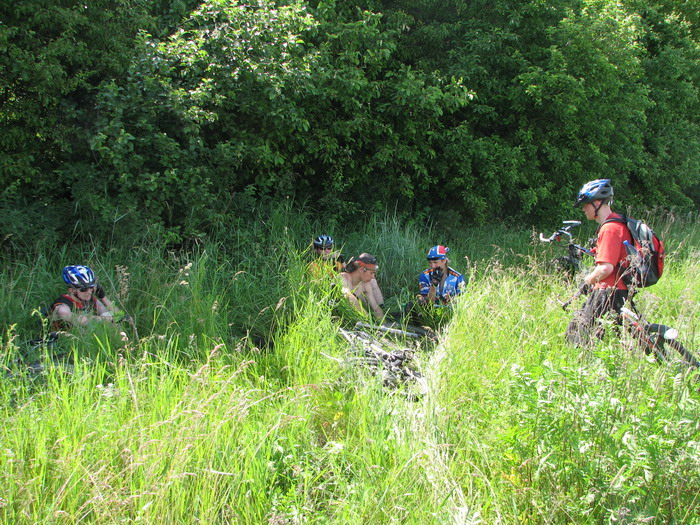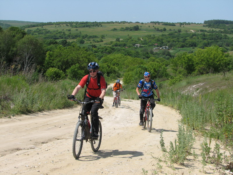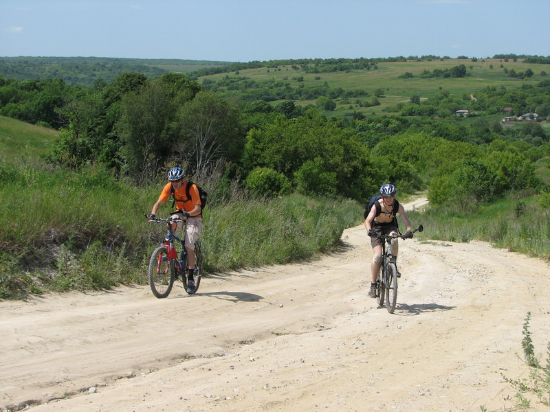 Пока ехали к Костенкам, двигались преимущественно асфальтами. Но уже на них присутствовали неслабые такие подъемчики :) (как сказал бы Стас «Тягунчик тренировочный») :) (градусов эдак в 12) :) . Сразу после подъема: передышка, перекус, перепив,