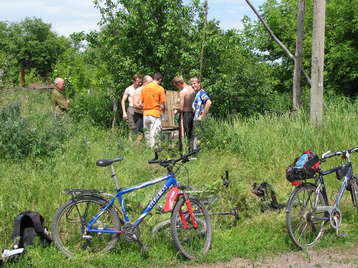 Запасы воды очень быстро иссякали и в Пашенково (если не ошибаюсь), пред нашими глазами предстал колодец. Мы всей гурьбой полетели естественно к нему, а мужик тем временем грустно так смотрел, как мы чуть ли не в клочья рвем его ведро, периодически, вырывая его из рук друг друга. :) Дабы разрядить напряжение, он принес нам еще и кружку, но это мало помогло.