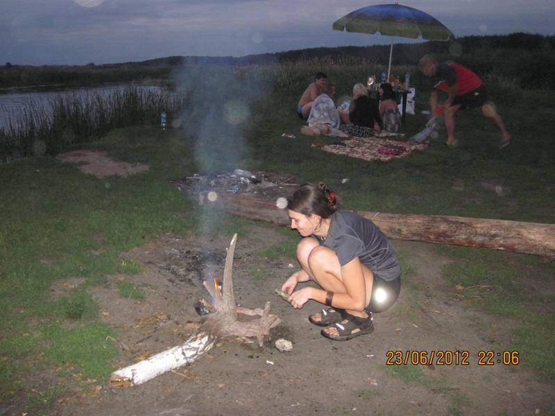 Толпа народу, шашлыки, алкоголь, танцы на столе у костра, стриптиз, купание в ночи.