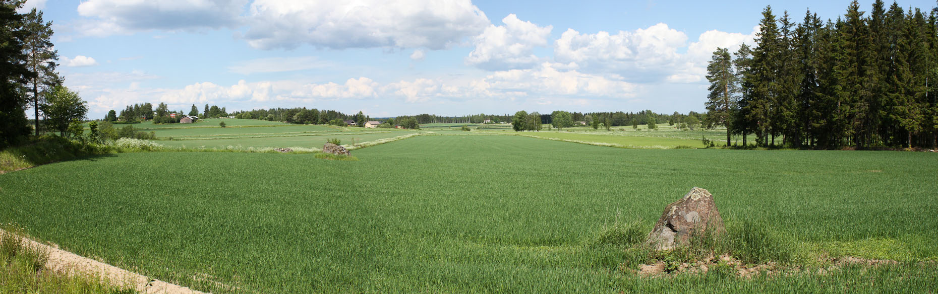 Про границу уже написал. Вот и Финляндия! Километры российских лесов, которые были предыдущие 40 км меняются на смесь леса/поля и разбросанные у полей домики фермеров.