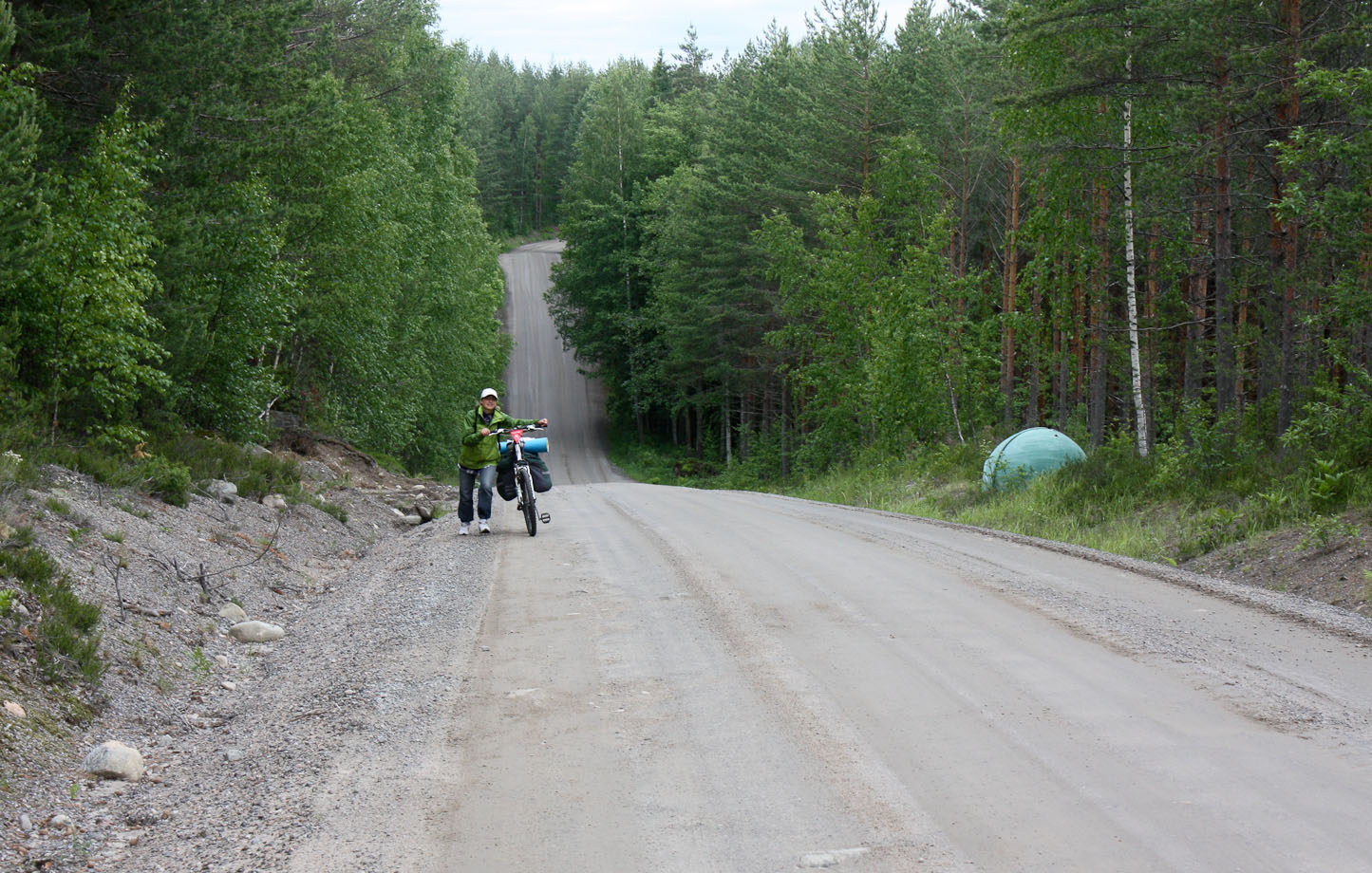 Финская погода: Не знаю это нам так повезло или такое у них финское лето – но погода весьма неустойчивая. Пару дней светит солнце, по ощущениям +20-25, затем пару дней пасмурно и прохладно, моросит и периодически идет дождь, и так по кругу. К этому нужно быть готовым: иметь теплую одежду, непромокаемые куртку с капюшоном и штаны. Ира в последний день перед отъездом сшила/спаяла бахилы из купленного за 200 руб. дождевика – помогло сохранить сухими кроссовки при езде во время / после дождя. В общем нужно быть готовым не только переждать дождь под деревом, но и ехать под небольшим дождем, который может идти часами.