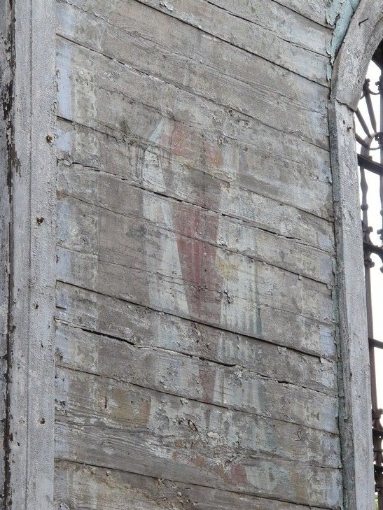 Затем был Безбожник. Он состоит как бы из двух частей: блатные дома и дачи. Первую проехали нормально, а в дачах я решил пробраться к реке, в результате сделали бестолковый круг по улицам и поехали в противоположном направлении. Выбрались в Парусное, затем в Тамлык. Курган найти несложно, он действительно большой и виден издалека. Оттуда поехали в Дружелюбие. Совсем близко маячила трасса М4. Она была так пленительна на фоне надвигающихся дождевых туч, что двое из нас не выдержали и уехали в ее сторону. А мы вчетвером поехали в сторону Горенских Выселок, решив, что успеем проехать грунтовый кусок до дождя. На мосту через Тамлык Dimlls тяпнула оса за палец. Местные жители предложили намазать укус зубной пастой, чего мы делать не стали. Лабиринтами полевых грунтовок добрались до Ушановки. Решили не рисковать, дождь висел прямо надо нами, и поехали в объезд по асфальту через Тимирязево. Там нас и накрыло превый раз, несильно. В Тимирязево отдохнули и двинули в Выселки. Церковь находится без проблем, она не около села, а прямо в селе, вокруг сельское кладбище. Нас ждал сюрприз в виде местного священника, который рассказал кое-что о церкви, открыл ее для нас, показал остатки настенной росписи и предложил взять на память 150-летних гвоздей, когда-то скреплявших стены.