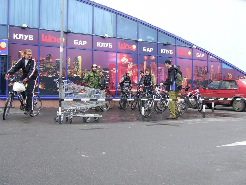 Спасибо участникам и болельщикам за столь чудесное мероприятие - позитивных впечатлений просто взахлеб. Приехал с велофорумки - ощущения потрясающие, не умещаясь, топчутся в голове, возвращая память со все новыми и новыми порциями фотографий. На встречу выехал с утра от остановки Суворова что на левом, встретиться с форумчанами решил у северной Линии - крюк, но оно того стоило. Никого еще не зная - первая моя покатушка - подъехал к гипермаркету в начале двенадцатого. Никого. Покружился по автостоянке, минут через пять подъехал Semik - ждать стало веселее. Пока представлялись, потихоньку подтягивались другие участники. Познакомились кто кого не знал (я не знал никого, что и было незамедлительно исправлено), закупились и выехали. Старт сопровождался вполне оптимистическими просветами на небе, впрочем, изредка перемежаемых мелким дождиком. Резво вкручивали педали, проехав до военного городка с остановкой и оттуда к месту сбора на кольце.