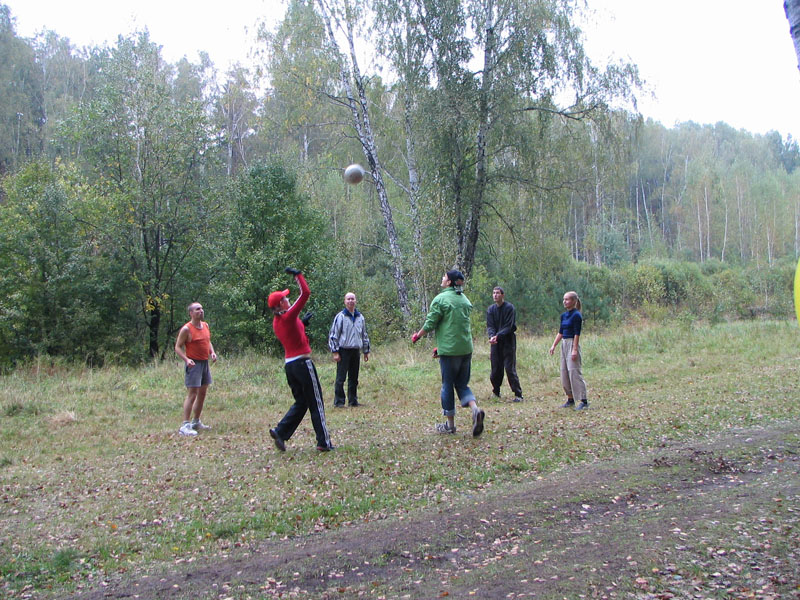 Сразу же нашлись любители волейбола и долгое время (почти до самого вечера) их можно было увидеть только на поляне с мячом. Да. я сам там был. Даже штаны порвал от усердия :)