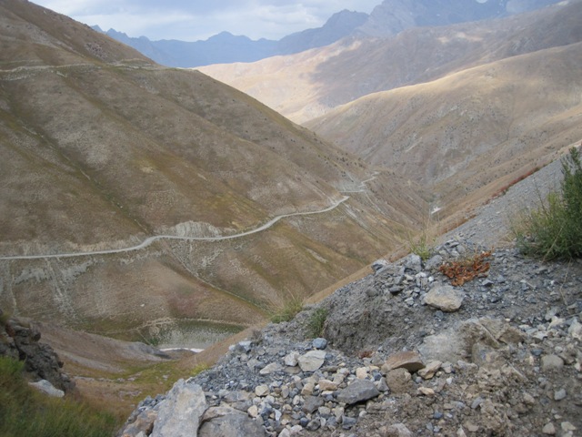 Дороги измеряют не километрами, а перевалами. Когда в Худжанте мы сказали, что едем в сторону Душанбе нам ответили: "Так это же два перевала!" Маленький крестик на карте, а рядом пер.Шахристон означает подъем по петляющему серпантину, по дороге покрытой мельчайшей пылью на высоту 3200 метров. В процессе подъема смотрели мы по навигатору не расстояние до перевала, а именно высоту над уровнем моря. Радует то, что стартовали мы не с нулевой отметки и набрать надо было "всего" пару километров. Ночевали сразу после спуска с перевала Шахристон, и в темноте, по фарам, наблюдали как карабкаются фуры все выше и выше. Лаудан вообще пешеходный перевал одни ослики и велотуристы за день мы его не осилили и велосипеды ночевали на перевале, а мы, не доходя до него (тащить одновременно велорюкзак и велосипед было очень тяжело). Но все трудности окупаются на самом перевале, виды завораживают. После Лаудана открывается небольшая сказочная высокогорная долина, окруженная снежными горами, два озера, разбросанные ледником камни. Также не забывайте про спуск. Сидя в ошхане и уплетая горячую шаурпу, после перевала Анзоб мы с Сережей обсуждали, что за два часа по каменистой дороге, по которой текут потоки воды, мы сбросили больше двух километров.