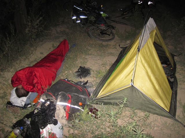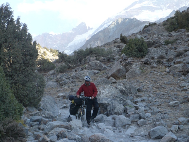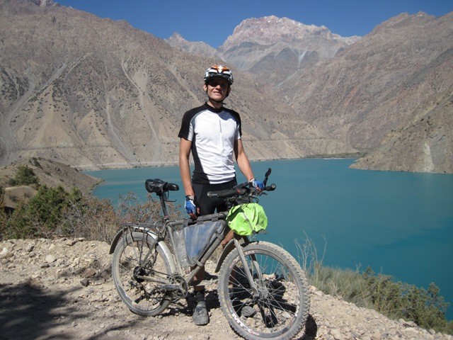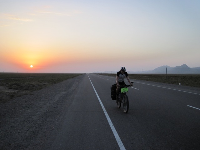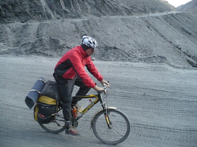 Немец из Восточного Берлина, встреченный вблизи Обигарма, запомнился хорошим русским ( неудивительно, после того как он перечислил районы России где он ездил на велосипеде), велосипедом за 70 долларов, купленном на монгольском рынке (5000 км уже прошел) (Сережа говорит: «Обязательно расскажу московским друзьям, что на велосипеде за такие деньги можно проехать такое расстояние»), размером штатива для фотоаппарата и интересным способом перевозки запасного багажника. Он метеоролог и вынужден полгода работать, а остальное время катается.
