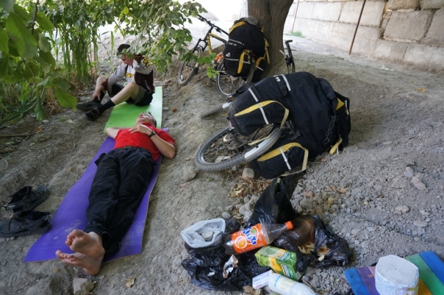 Бдительности терять не стоит. Мы думали, что интерес к стоимости наших велосипедов праздный, но потом нам рассказали, что бывали случаи воровства сразу восьми велосипедов у иностранных туристов. Сложно что-то сказать по этому поводу, но думаю, если ночуете в горах или лесу надо быть осторожным. Но если ваша палатка стоит на чьем-то огороде, в чьем-то дворе, вы - гость. Даже если у жителей села большие бороды и автоматы Калашникова, важно с какими намерениями вы пришли. Будьте готовы сначала к приглашениям переночевать в доме, а потом к череде больших тарелок с лепешками, простоквашей и всевозможными угощениями. Помогают очень деликатно, больше дела чем слов: "Вы прошли тяжелый перевал, что нужно?"