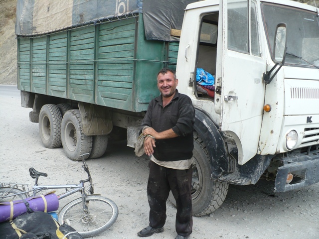 Изначально я читал, что соваться на велосипеде туда не стоит: сильная загазованность, кромешная темнота и потоки воды и так все 5200 метров тоннеля, построенного иранскими строителями. Ребята благоразумно дождались Камаз, положили велосипеды сверху на тент кузова, и в путь. Машина старая, везла уголь из Худжанта, туда порожняком едет сутки, обратно, груженая двое суток: расстояние километров 200, но главное - два перевала. Трудно сказать, что сложнее, на подобной машине, забраться на перевал или спуститься с него. Водитель рассказал всю свою жизнь, пригласил в гости, и не только не взял денег, но даже не разрешил Андрею при мытье рук полить воду: "Тебе нельзя, ты гость."