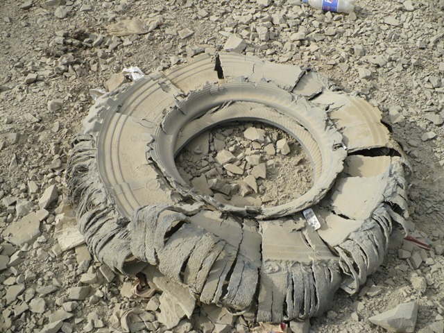 Сережа - человек науки, проводил в походе одновременно три эксперимента. Первый: сон на свежем воздухе. Хотя, залезть в два спальника, упаковаться в велочехол и потом утверждать: "Люблю спать под звездами." Но держался стойко, сделал два исключения за весь поход. Причины: плохое самочувствие и сильный ветер, а во второй раз потекли ручьи. Второй: забыл дома кружку и пил из пластиковой треснувшей самолетной, упорствовал, пока не подогнали ему хорошую пластиковую баночку с крышкой, освободившуюся от меда. Но зато третий эксперимент завершился его полной победой: Швальбе Марафон плюс тур с защитой Смарт Гарт не проколется. Такая покрышка стояла у него на заднем колесе, переднюю в расчет не берем: с жесткой вилкой Сережа тестировал варианты балонного велосипеда, по ширине покрышка была почти как у меня на "Яве" (он даже специальную запасную камеру вез). Хотя у Андрея, даже более дорогие, Швальбе Марафон Экстрим, тоже с хорошей антипрокольной защитой, за несколько оборотов колес имели 9 проколов, колючки мелкие, искать сложно. Я экспериментов не ставил, а снимал велорюкзак на обочине дороги и нес велосипед на руках, но проколов не избежал. Антипрокольную ленту выкинул на третий день похода. В Закарпатье все было хорошо, колеса не спускали. А тут внутри колес черный резиновый порошок и потертости на покрышке и камере, может температура гораздо выше.