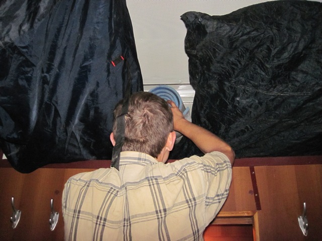 Засунули с Сережей два велосипеда на багажную полку в купе, половина не вошло, но мы их привязали к маленьким сетчатым полкам и довольно комфортно разместились.
