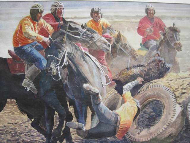 Национальное развлечения. Интересны головные уборы.