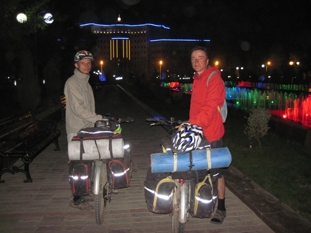 На обратном пути чуть не пересеклись с Путиным, прилетевшим в Душанбе на День Рождения Имамали Рахмона. В аэропорту видели борт №1, но в стороне от основного аэропорта стоит, сверкающее золотом здание, думаю там он и проскользнул. А такую мы хорошую полянку приметили близ аэропорта, думали поспать перед полетом, но везде были люди в форме, и пообщавшись с военным патрулем мы решили не искушать судьбу и поехали неспешно паковать велосипеды.