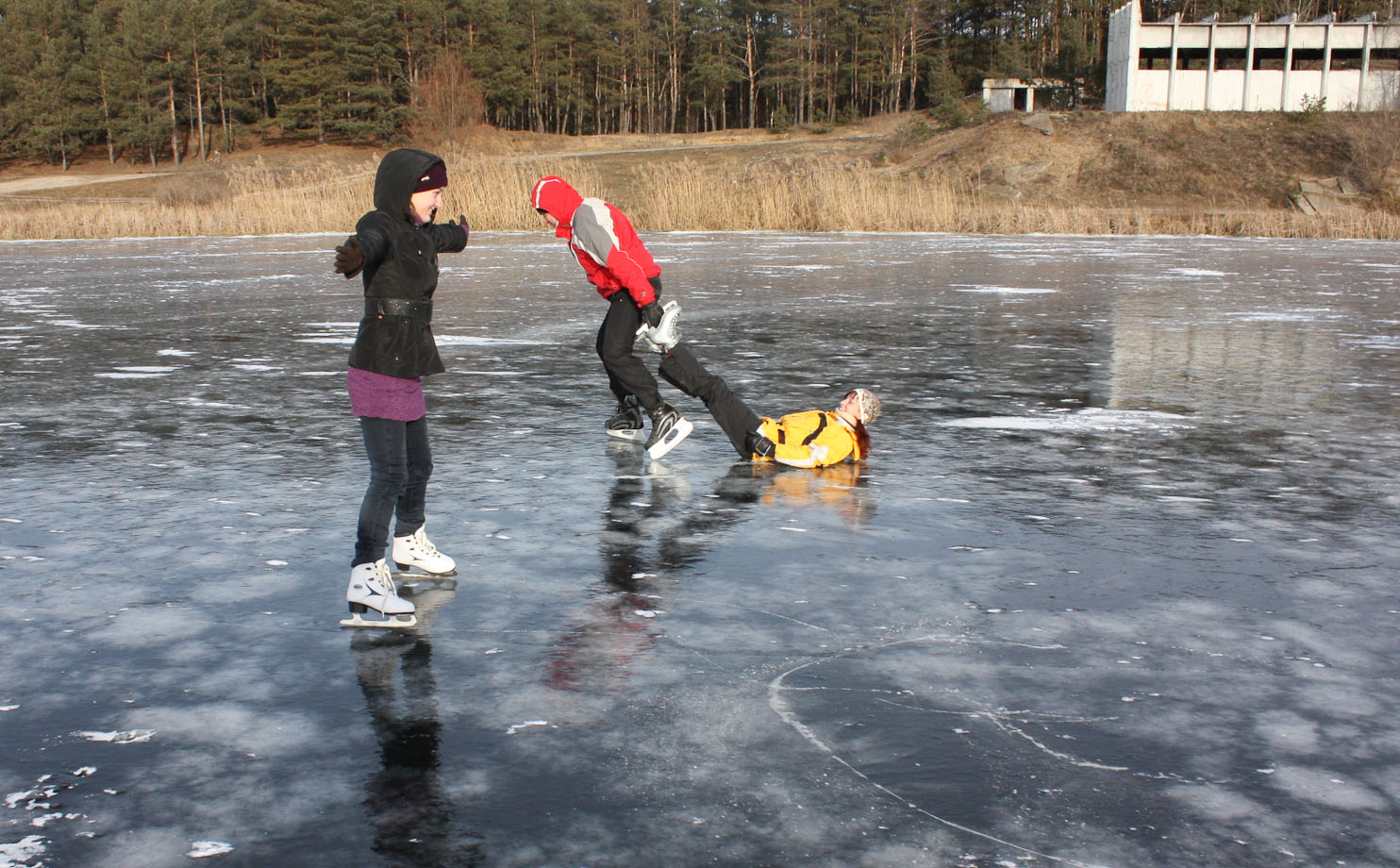 На гладкий лед озер, рек и т.п. я с детьми не пойду.