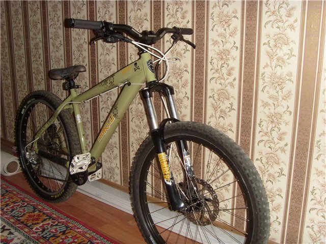 Собсна продасца этот вел. Куплен в феврале 2012 года. Состояние на 5-. Из косяков есть потертости на раме от тросиков и мелкие еле заметные зарапки от неаккуратного прислонения на стену. Требуется прокачка заднего тормоза (не критично, тормозят отлично , просто ход у тормозной ручки большой) такие тормоза достались при покупке и отъездил с ними сезон. Требуется подстройка заднего переключателя. Грипсы на концах надорваны в на краях руля.