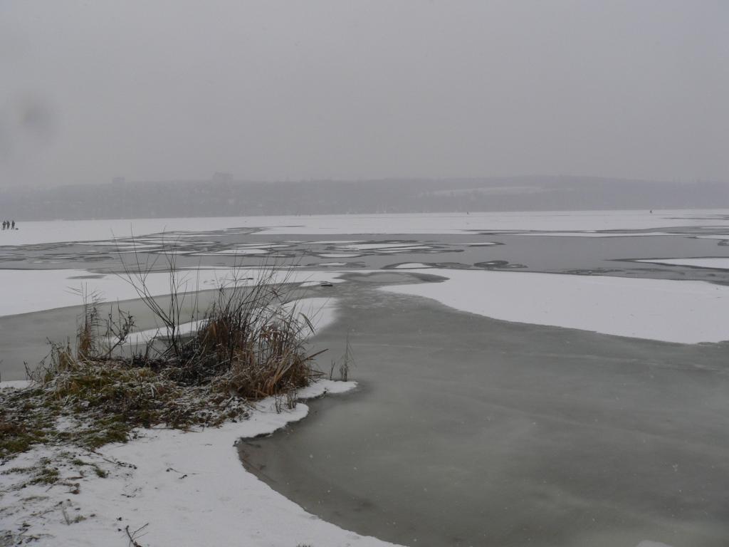 Виновата оттепель, стоки или автодорога, но под Чернавским мостом местами льда нет совсем. Желающим катать по льду надо быть поосторожнее.