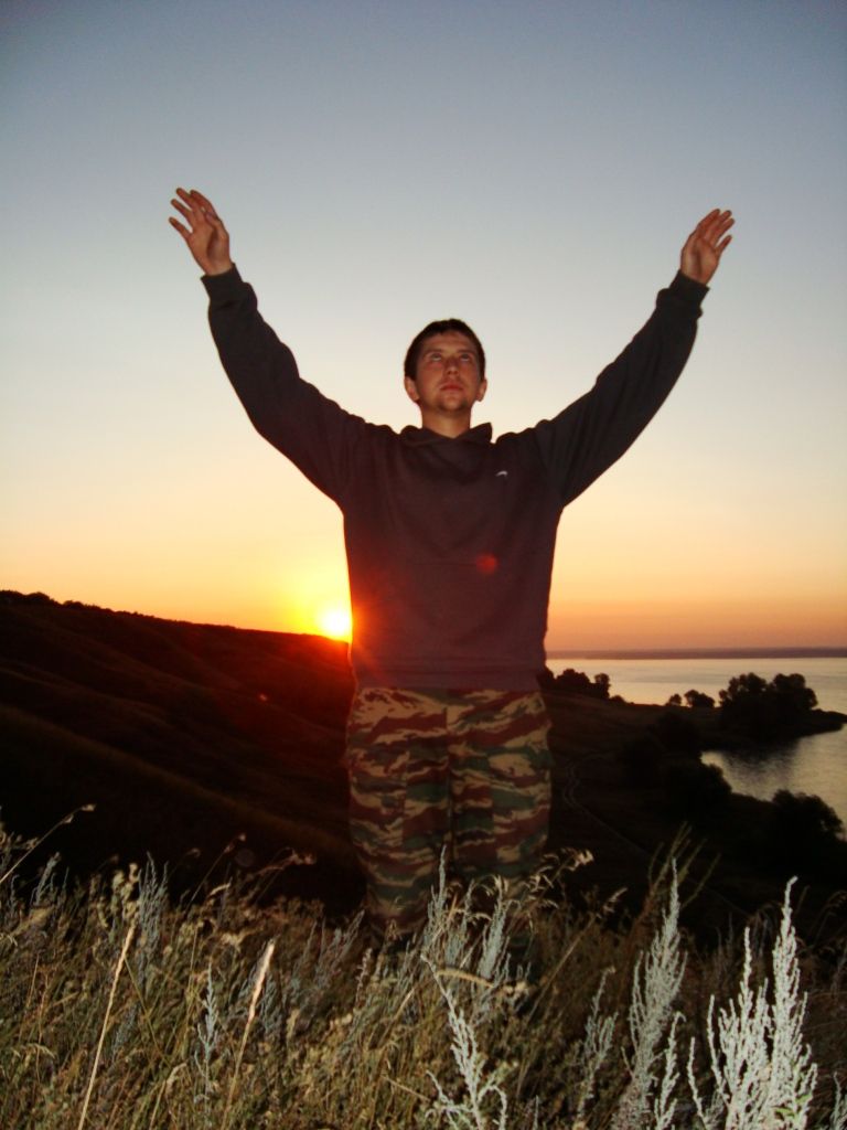 Приехали гонцы с едой, и все дружно начали жарить сосиски. Кто то жарил до корочки, кто то от голода проглатывал их полусырыми. Тем временем начало светать. Перед нами открывался чудесный вид! Все начали фотографировать. Затем рассосредоточились. Я полез на самую высокую горку, дабы полюбоваься пейзажем и запечатлил эти мгновения. Тем временем совсем рассвело и мы двинули в город, по дороге устрои набег на поле с пожсолнухами. Нет, не чтобы их собрать, а чтобы сфоткаться на фоне этой красоты. По городу быстро прохватили до левого берега, где и расстались. На одонометре 57км.