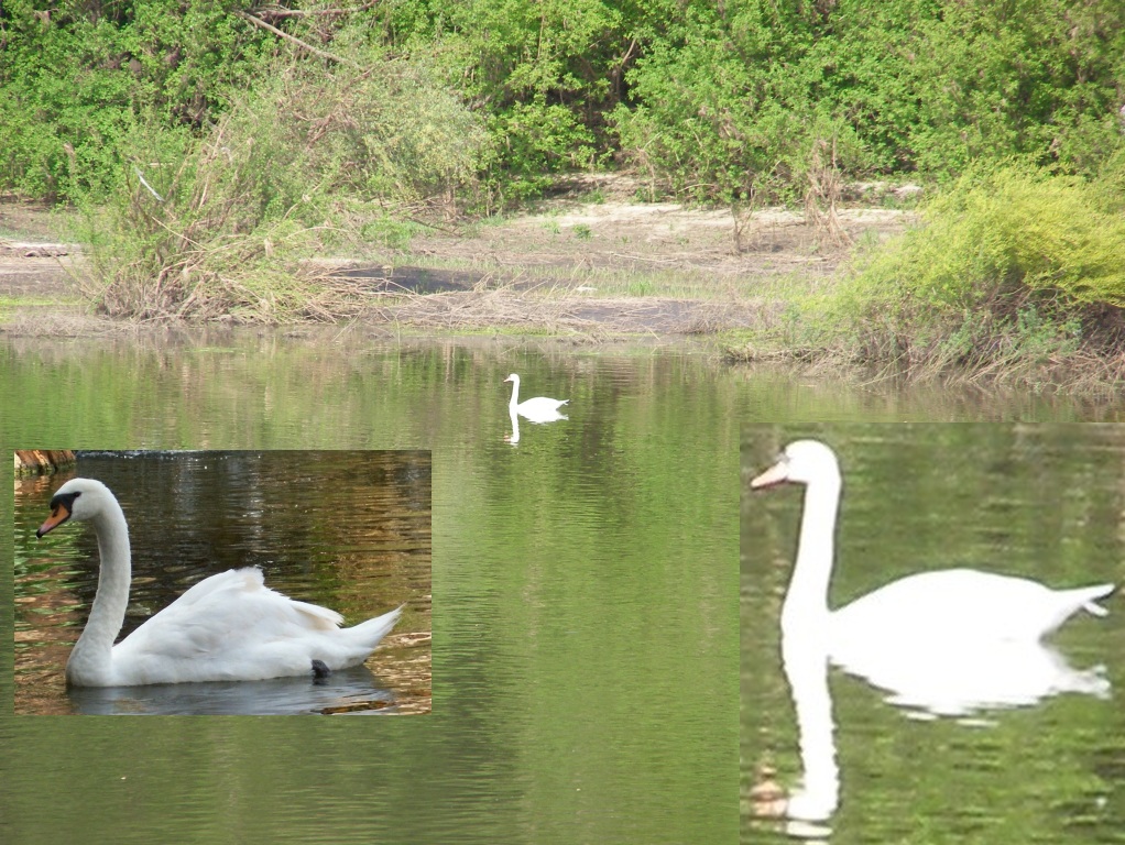 В пользу лебедя говорят черный треугольник от клюва к глазу и острый задок.