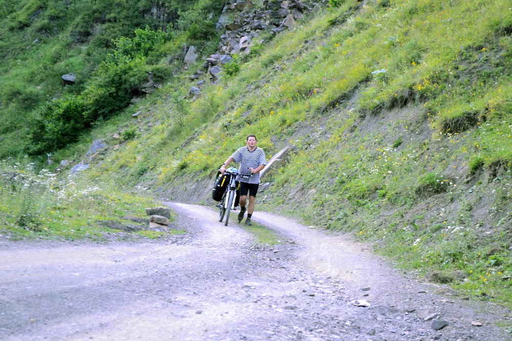 Есть одна, но очень важная поправка. Начав поездку также из Владикавказа, мы своим ходом прошли через В.Ларс. Благополучно на великах проехали мимо длиннющей, на три-четыре часа очереди из машин и за десять минут без всякого копания в велоштанах оказались на нейтральной полосе. Все пограничные формальности у грузин (а через неделю и у армян) и вовсе заняли по минуте на человека.
