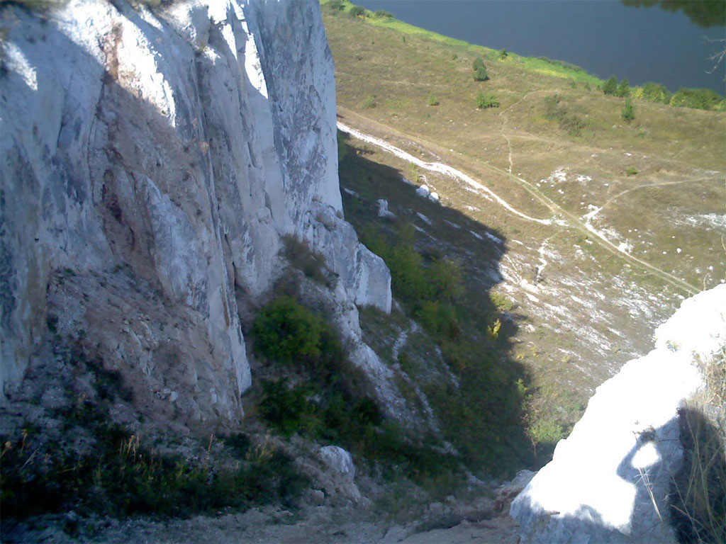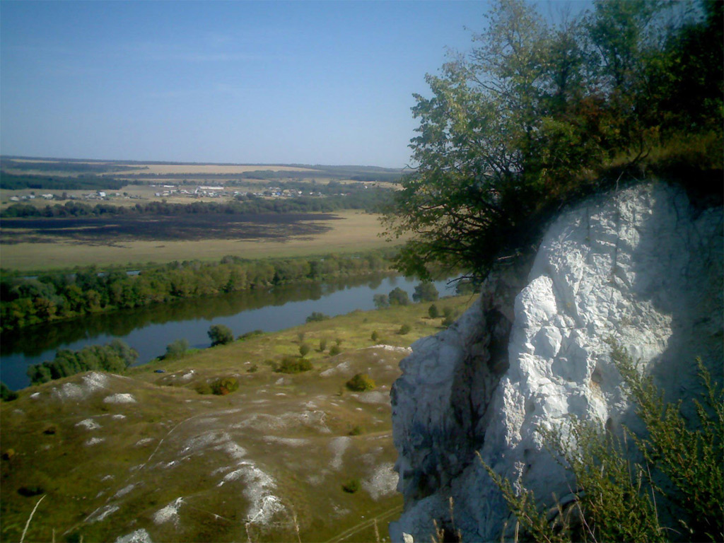 Сразу хочу отметить, что поездка мне понравилась( и думаю не только мне). Стартанул я в 8-15 от линии, как и объявлял, больше желающих не оказалось, поэтому встретившись с Андреем(Prog) у зевса покатили по окружной в сторону юго-западного. Прохладное утро, ехать было одно удовольствие, остановившись не надолго у юз рынка, и не обнаружив входящих звонков(lu.iguana вроде собиралась) покатили дальше. Полюбовавшись видами в районе Шилово подъехали к понтону и успешно его преодолев выбрались на правый берег Дона. Погодка очень радовала, море солнца и свежего воздуха помогли нам долететь до острогожской трассы, где мы остановились немного подкрепиться. Дальше предстоял 30ти километровый отрезок по двух полосной(узкой) дороге с довольно приличным трафиком, так что собравшись духом мы тронулись, на протяжении всего пути по этой трассе мы все время ехали немного вверх))), поэтому если кто захочет прокатиться в обратном направлении поездочка получится супер матрасная. Вобщем проехав около 10ти километров дорога расширилась раза в 3! (видимо делают трассу на южное направлении) и мы ехали с большим удовольствием, общаясь друг с другом и не замечая трафика. Проезжая отворотку на Нововоронеж, отзвонился 460й(Сергей) и сказал , что прокололся, но скоро будет в Сторожевом, договорившись созвониться на месте покатили дальше. За эти 30 км, единственным указателем на лево был на Сторожевое, где Сергей отзвонился и мы сказали что скоро будем. 8 км по не очень хорошему асфальту и мы в Сторожевом, вспомнив прошлую поезду остановились около местного магазина, который оказался закрытым, и начав движение дальше обнаружили , сидящего в тени 460го, который спокойно наблюдал, как мы пытались выломать дверь в закрытый магазин. Вобщем встретившись, он сообщил что у него лопнула подседельная рамка, но это фигня и мы поехали дальше, затарившись в следующем лабазе. 20 мин и вот оно! Меловой утёс во всей красе, виды обалденные(немного фоток прилагаю). Да стоя на 40 метровой высоте было немного не по себе смотреть вниз. А в низу слышались голоса альпинистов, которые штурмовали это чудо природы. Перекусив и налюбовавшись видами начали спускаться вниз прямо по узкой меловой тропинке(Стас, Радлер и Тигра, меня поймут, правда на фотке я видел , как они поднимаются). Вобщем адреналина получил массу и спустившись вниз с облегчением вздохнул. Экстрим, чистой воды, Андрей, спускаясь за мной, всё не мог понять почему мы тащим велосипеды , а не они нас))). Насмотревшись на альпинистов снизу, двинули дальше. Да дорожка до Титчихи вдоль дона это что-то. Проехав около километра пришлось очищаться от репейника, а в последствии и обмываться в Дону, так как ехать было невозможно(даже под рюкзак набились). Хорошо , что оставшуюся часть до понтона была довольно сносная грунтовка и вот мы перебрались на левый берег Дона. В Аношкино пополнили запасы воды и по асфальту покатили в сторону Нововоронежа, небезызвестный песчаный участок, где возникало сильное желание искупаться, но ребята меня отговорили пугая близостью АЭС, и мы в Нововоронеже, где перекусив и немного отдохнув тронулись домой. Асфальт привёл нас в родной Воронеж, где у вогреса расстались с Сергеем и покатили в северный.