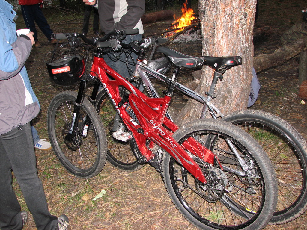 Дождавшись провожатого (мы-то доехали до автовокзала минут за 10, а ему ехать надо было минут 40) поехали вместе потихоньку в сторону общей тусовки. По пути заехали в пару магазинов, встретили ещё нескольких велосипедистов, и всей компанией дружно добрались до Силикатных озёр. Там, среди леса, на берегу озера, на отличной полянке, уже отдыхали от дневных катаний и пили пиво у костра москвичи и липчане.