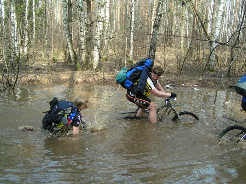 Наш ответ - ПингВин, штурмующий лужу близ Излегощи, когда весной на Татарский Вал ездили. Где то фото было.