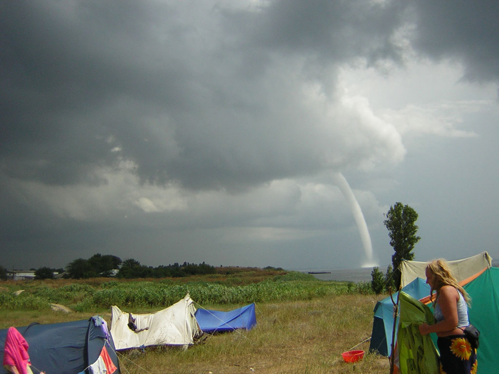 Проблемы начались, когда мы пытались пробиться по берегу до самой Тамани - после всех песчаных побережий начались обрывистые (глинистые, обсыпающиеся) берега и упавшие сверху камни. Кое-где пробирались чуть ли не по пояс в воде, огибая завалы. В итоге уперлись в непроходимые завалы (справа - гора, слева - море "по горлышко"), и часа в 2 ночи, под сильнейшим ветром и бушевавшей недалеко грозой (до нас, СЛАВА БОГУ!, не добравшейся) пришлось ставить палатки на узкой полоске прибрежного песка. Когда проснулись, пара вбитых колышков оказались размыты и мы их так и не нашли Потом, безветренным утром, я прошелся до мыса - где-то - поверху, где-то - по-над морем. Недалеко нашел два выброшенных морем дельфина, полазил по останкам разбитого судна, зашел на маяк, познакомился с тамошними людьми - добрейшая семья. А когда лазил по выветренным скалам у моря, собирая интересные камни - испытал шок. Поднимаю глаза - вижу из моря, от расставленных сетей, идет НЕЧТО! У меня волосы дыбом встали и был просто шок от испуга - я даже не смог двинуться камень поднять для обороны! Нечто большое, высокое, бесформенное, с огромным торсом, без головы!!!, ковыляло в мою сторону. Сразу вспомнились все рассказы о морских монстрах, Лох-Несском чудовище, фильм о человеке-амфибии и т.д. Кое-как оправившись от первого шока, смог разглядеть, что это был, скорее всего, человек. Но необычный. Вернее даже сказать - уникальный. Он должен был быть просто невероятно огромного роста и невиданной силы и мощи из-за своего торса, который скрывался под огромным черным рыбацким плащом, и длинных ног. Но его спина была сломлена - голова находилась то ли где-то сбоку, то ли - спереди (а не сверху), и поэтому я ее не увидел сначала, на спине/боку - неописуемый горб. Горбун с очень длинными ногами (кажется, он еще и хромой был), туловище из-за горба издалека видится как вдвое уменьшенное, голова вообще невидна, длинные руки-грабли - мне было от чего впасть в шок. Оказалось, недалеко была его лодка, к которой он и направлялся. Мы даже поздоровались и я поспешил возвратиться к нашей стоянке. Другу рассказал потом про Квазимодо.. Дома лежат несколько интересных камней в память о пребывании на мысе Железный Рог.